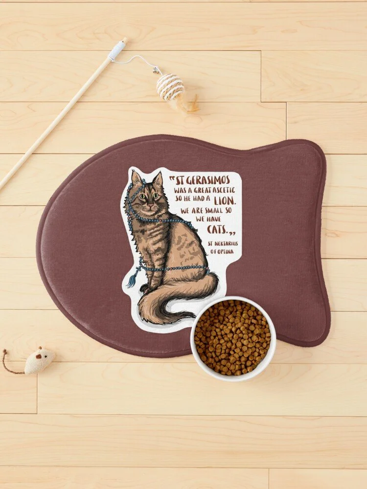 Gerasimos the Cat was found as a tiny sick kitten and the vet didn't give much hope of his survival. One night I lay him down below the icon of St Gerasimos of the Jordan and asked him to look after this little lion, as he had looked after his own. I didn't expect him to make it through the night. But the next morning his fever had dropped and we went on to make a full recovery, so I named him Gerasimos (pronounced Yerasimos in Greek) but that was a very formal name for a tiny floor so it morphed into Yewathimoth, Wathimoth for short. His two greatest obsessions are prayer ropes and antidoron.
